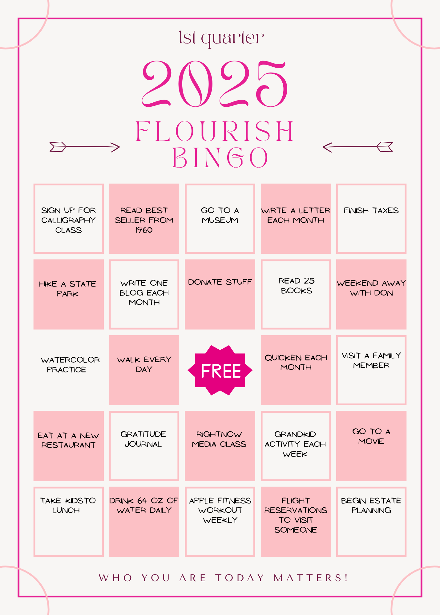 I’ve always loved bingo. Consequently, in keeping with my quarterly emphasis, I created a Flourish Bingo card for the first quarter of 2025.