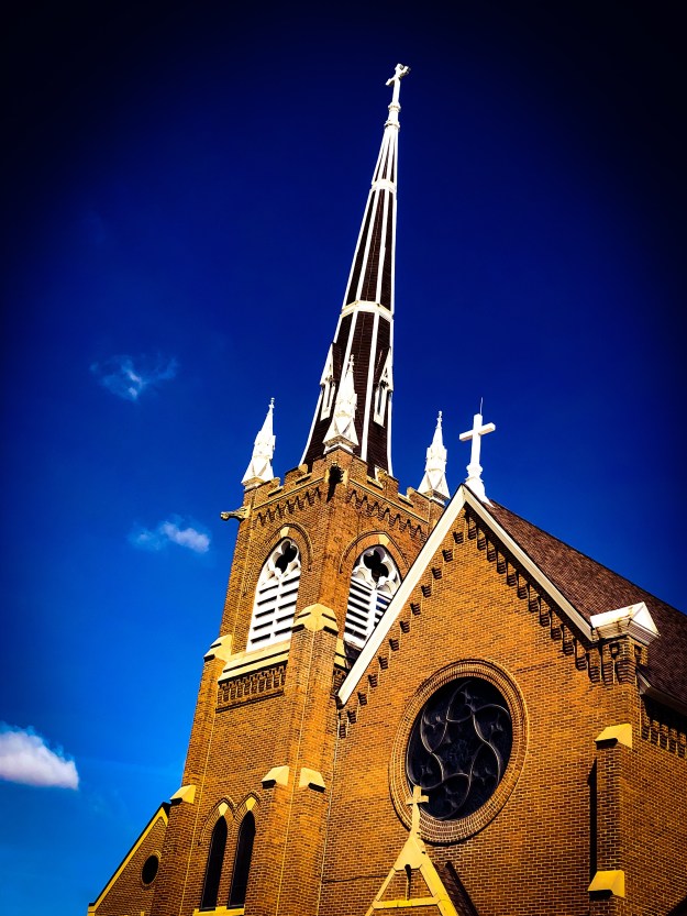 I walk all over Cedar Rapids over my lunch hour and always notice the proliferation of church buildings in various denominations:Presbyterian, Catholic, Episcopal, non-denominational, inter-denominational, and more. You want it, it’s here somewhere.