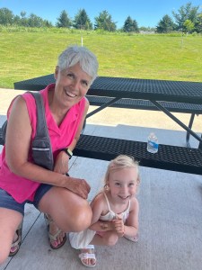Once she had made it to the highest point (about 3 feet off the ground), she smiled and basked in the glory of the “You did it!” affirmations she heard from all of us. Then Grandma would swoop her up and twirl her around before setting her feet safely on the worn mulch padding of the little play area. And I would hear, “Again!” So we did it again and again and again. I was happy to make her happy. That’s what grandmas do.